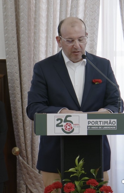Discurso de Pedro Mota, deputado municipal do Bloco de Esquerda, nas comemorações do 25 de Abril em Portimão, em 2025.