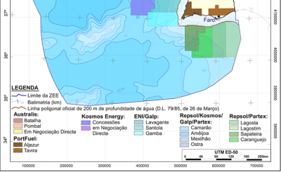 2. Em terra, grande parte do território algarvio está incluido nas concessões à Portfuel das áreas denominadas “Aljezur”, que abrange também parte do concelho de Portimão, e “Tavira”.